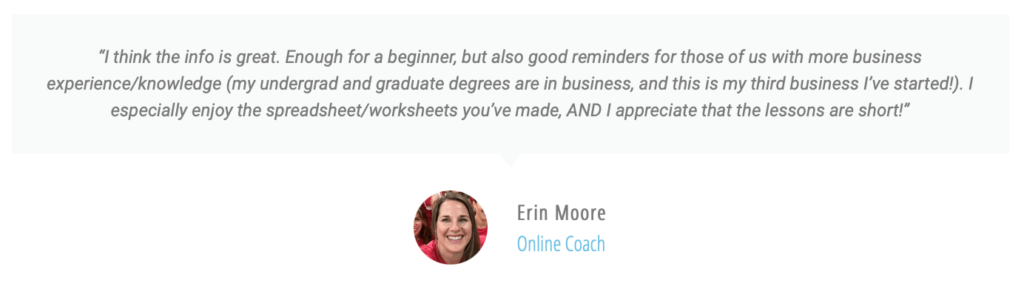 Taking this course is like getting thousands of $$ in discounts for setting up your business. Simply the time you’ll save in searching on how to do some of the basic setup will easily cover the cost of the course. I want this course to be accessible for those on a budget as they start up, but the price also needs to be an incentive to complete the course. The WORST thing would be to sign up and then not take advantage of all the information and tools you’ll get access to.